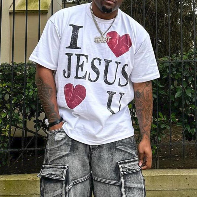 I Love Jesus Love U Print T-shirt