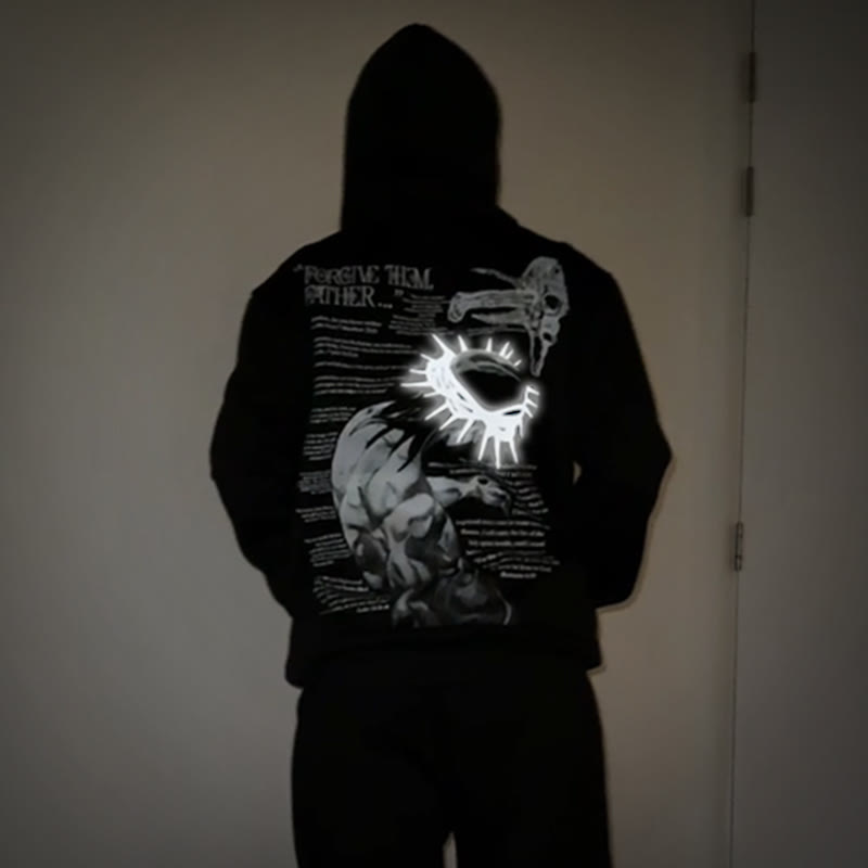 Unisex 3M Reflective Crown Of Thorns Print Hoodie And Shorts Set