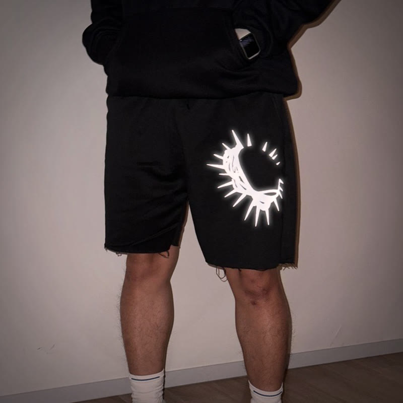 Unisex 3M Reflective Crown Of Thorns Print Shorts