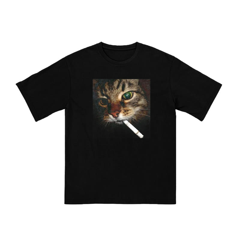 Unisex Cat With Cigarette In Mouth Print T-shirt