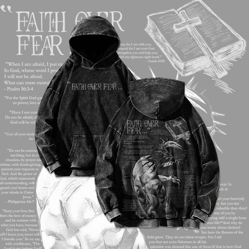 Unisex Faith Over Fear Bible Verses Printed Washed Hoodie