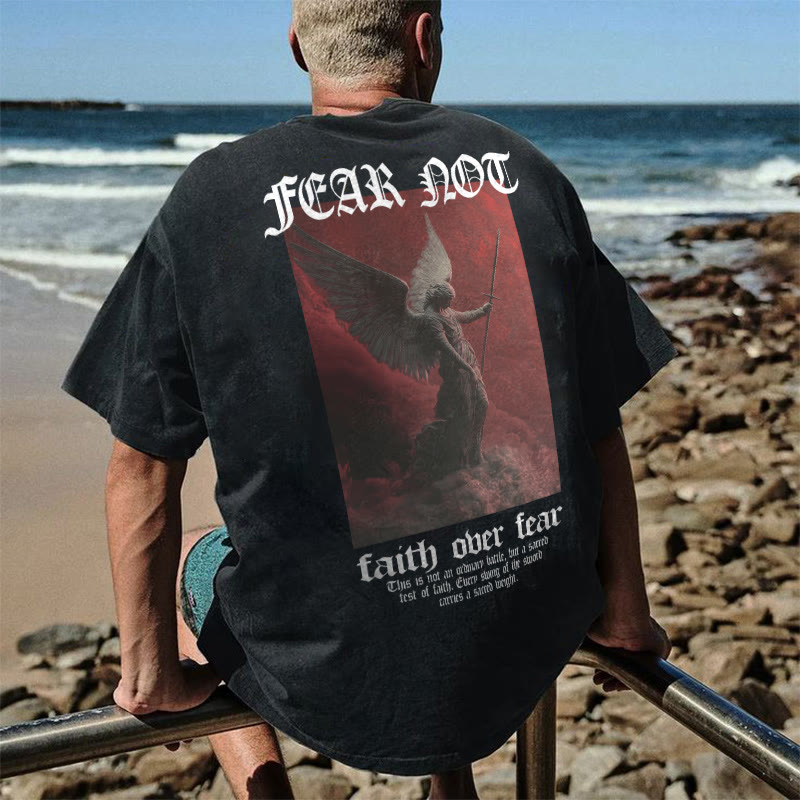 Unisex Fear Not Faith Over Fear Print Acid Washed T-shirt