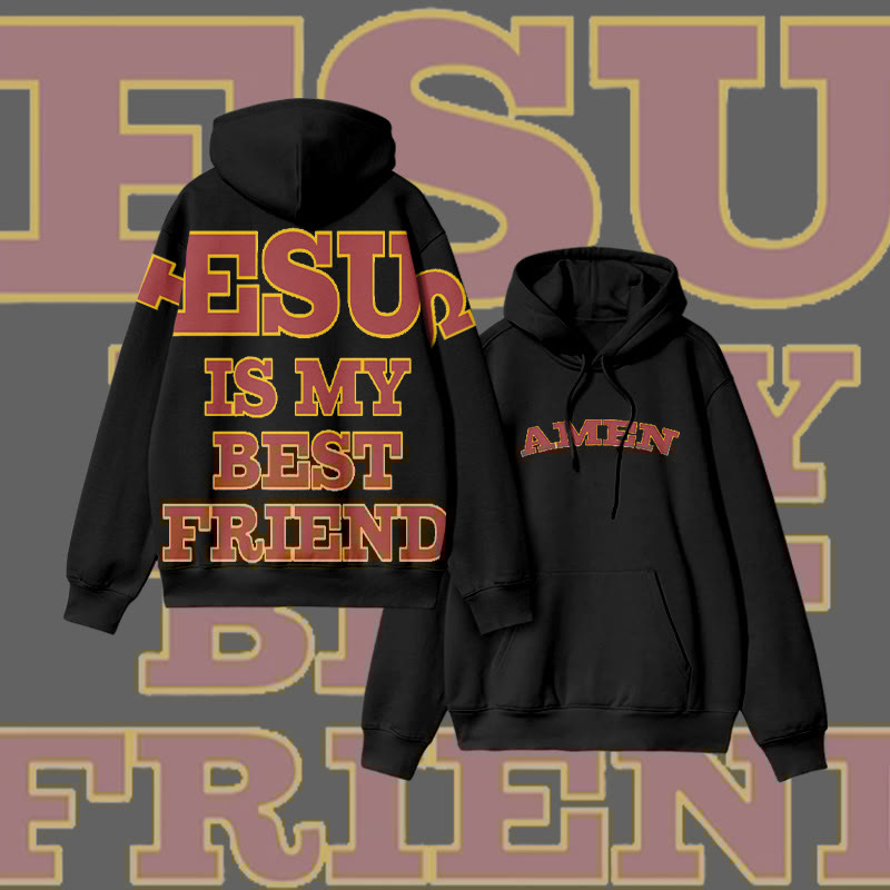 Unisex Jesus Is My Best Friend Print Streetwear Hoodie