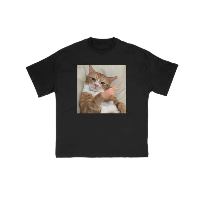 Unisex "Scissor Hand Gesture" Fun Cat Pattern Print T-shirt